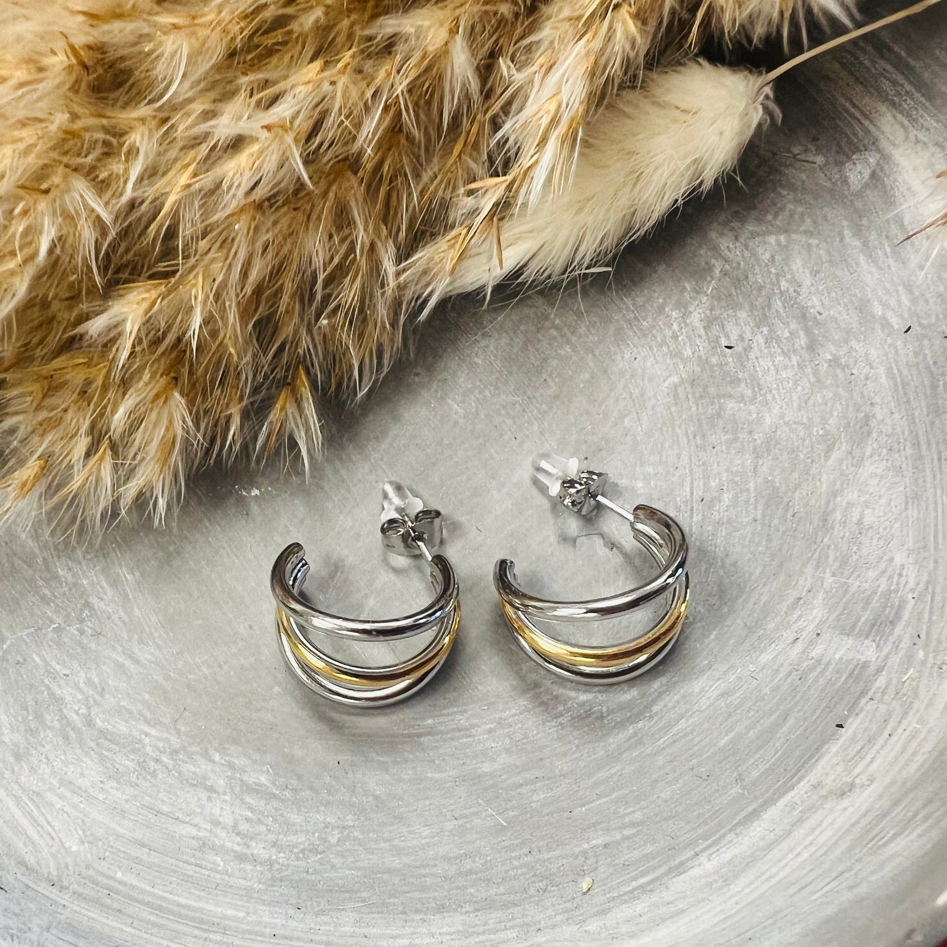 The WS-2 Tone Hug earrings are perfect for adding an edgy touch to any outfit. Made of stainless steel, these huggies feature a two-tone design that is sure to turn heads. Make a statement and have some fun with the WS-2 Tone Hug earrings.