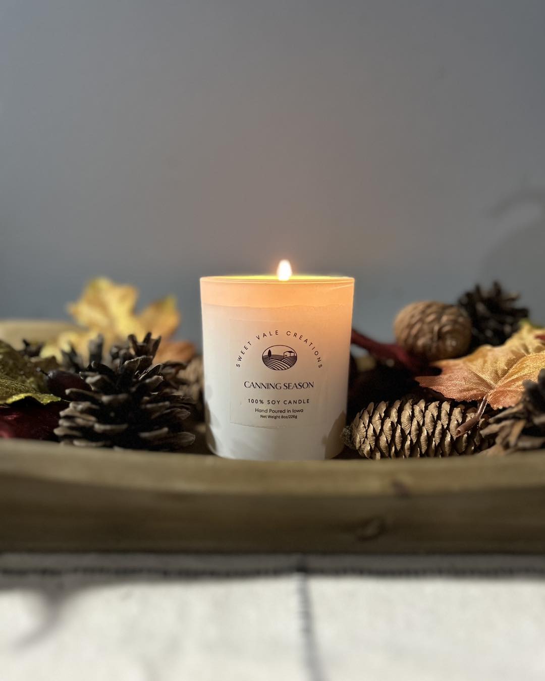 Canning Season: A rich, luscious blend of tart cranberry sauce and apple jam, highlighted with crushed cinnamon sticks and a hint of spices and sugar. Mixed with sweet leaf greens, fresh pines, dewy spiced florals, and earthen musk combined with spiced apples.