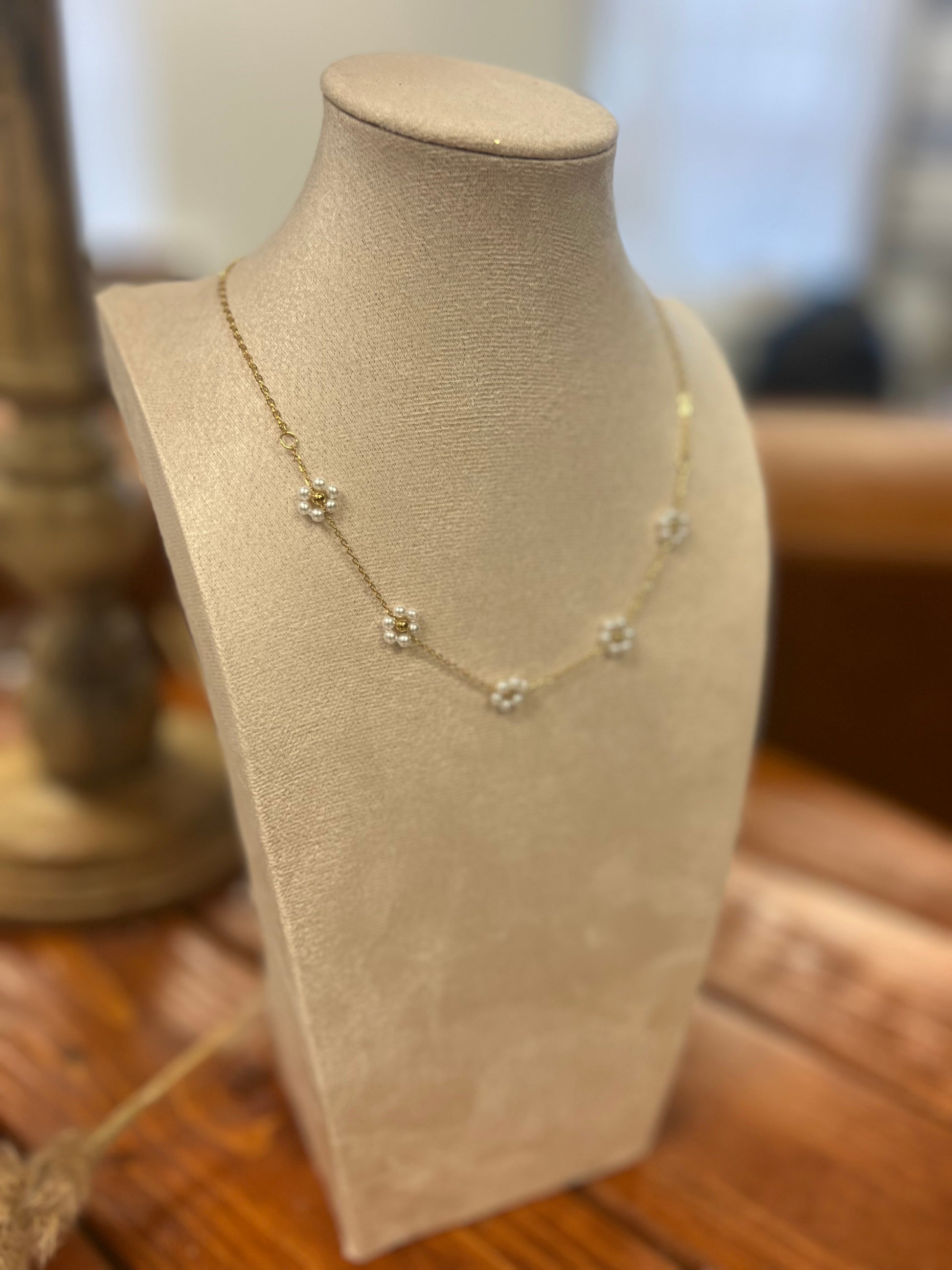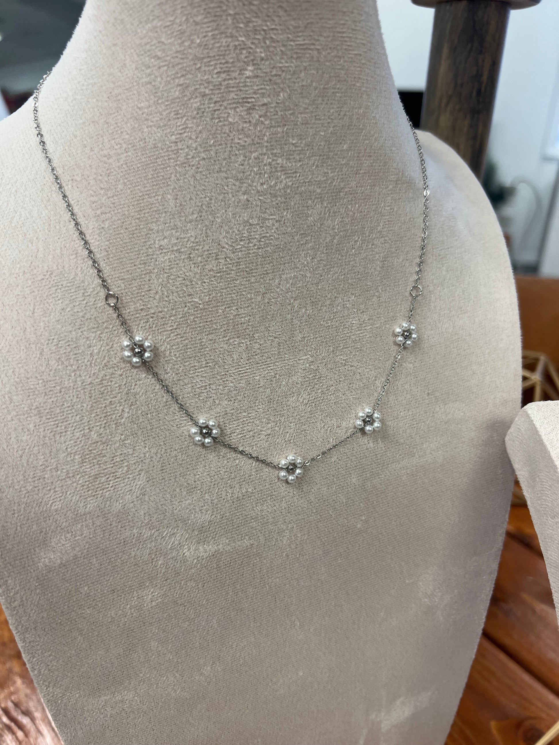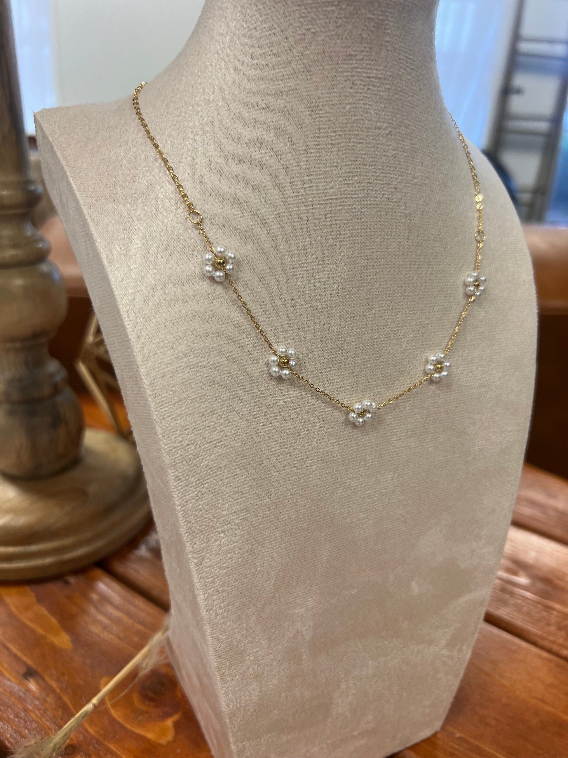 Unleash your inner flower child with Flower Child 2.0. This single strand necklace features multiple artificial pearl flowers, giving you a playful and unique accessory for any outfit. Embrace your bohemian side and stand out from the crowd. (Hippie vibes not included.)