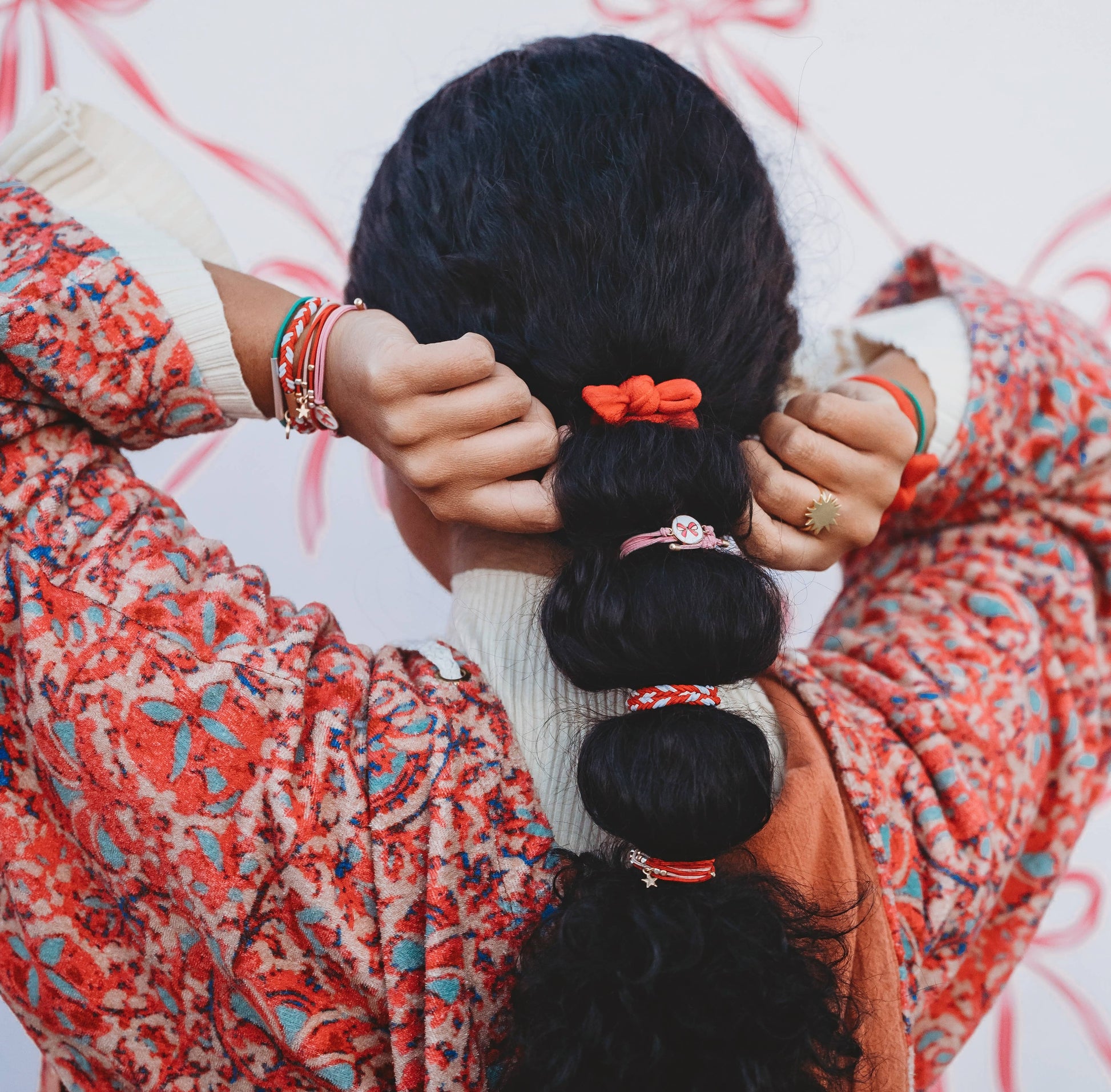 Introducing Joy – the perfect holiday hair tie bracelet! With festive colors and a subtle sparkle, Joy seamlessly transitions from wrist to hair, adding a touch of holiday magic to your style. Whether you're dressing up for a seasonal celebration or keeping it casual, Joy brings both charm and function to any outfit.