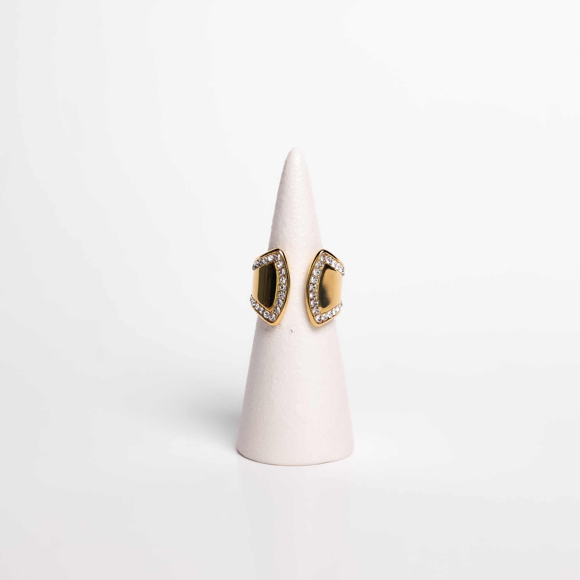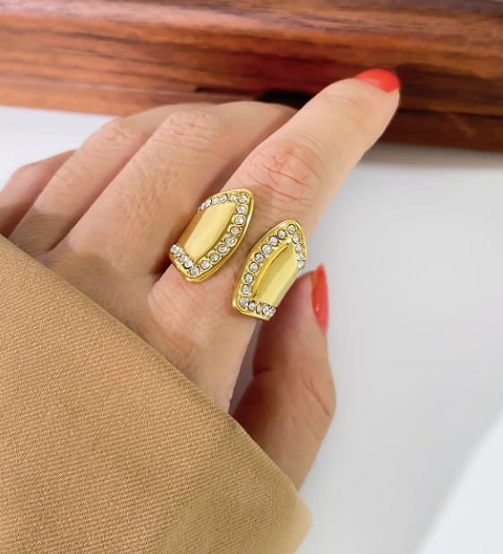 Make a bold statement with these vintage-style open rings, crafted from solid stainless steel and plated in radiant 18K gold. Adorned with sparkling rhinestones, each ring combines timeless elegance with a daring edge, perfect for those who want to stand out with confidence and style.