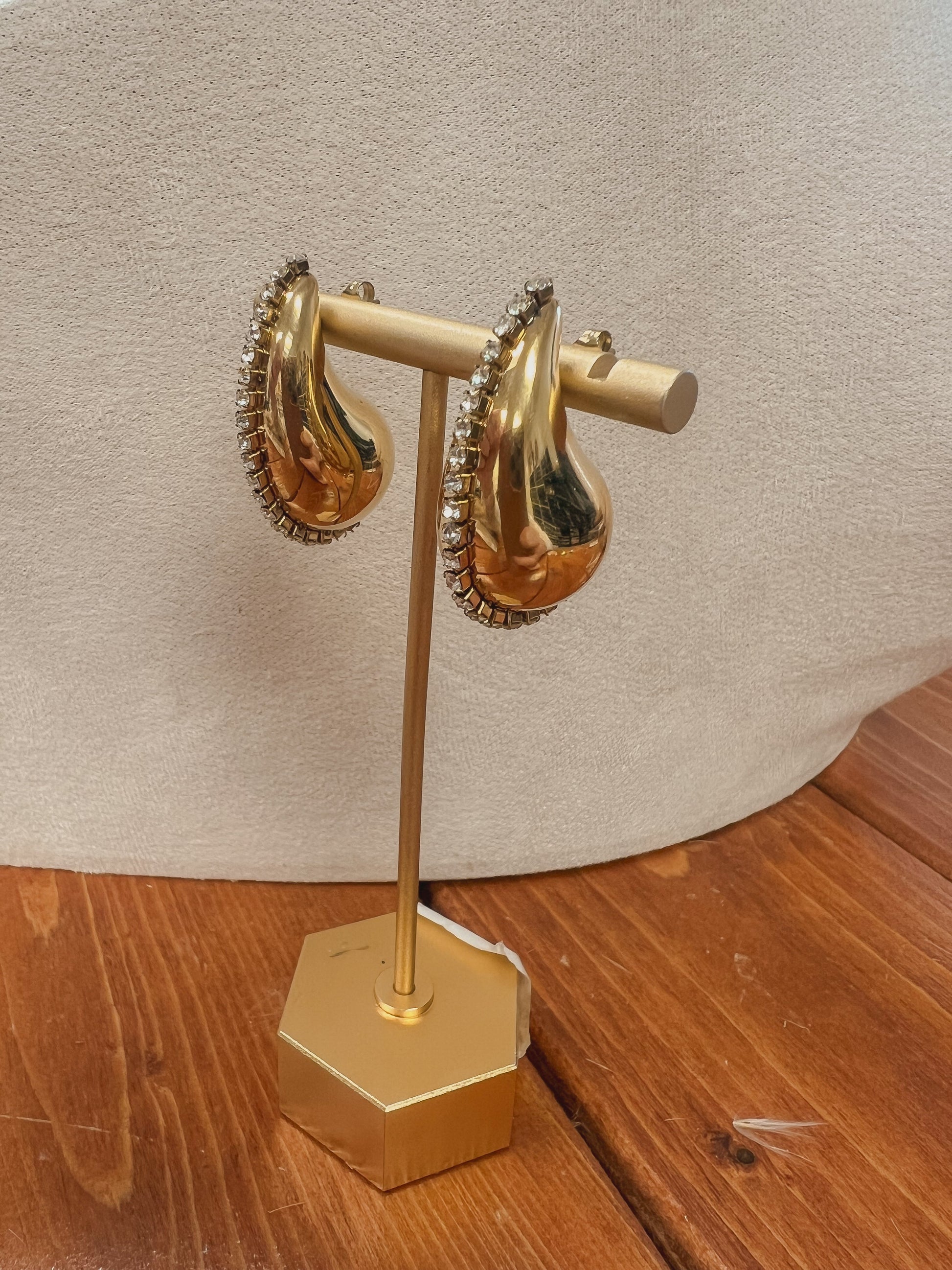 Stainless steel teardrop earring with stones down the center. Add a little spice to any outfit with these earrings.