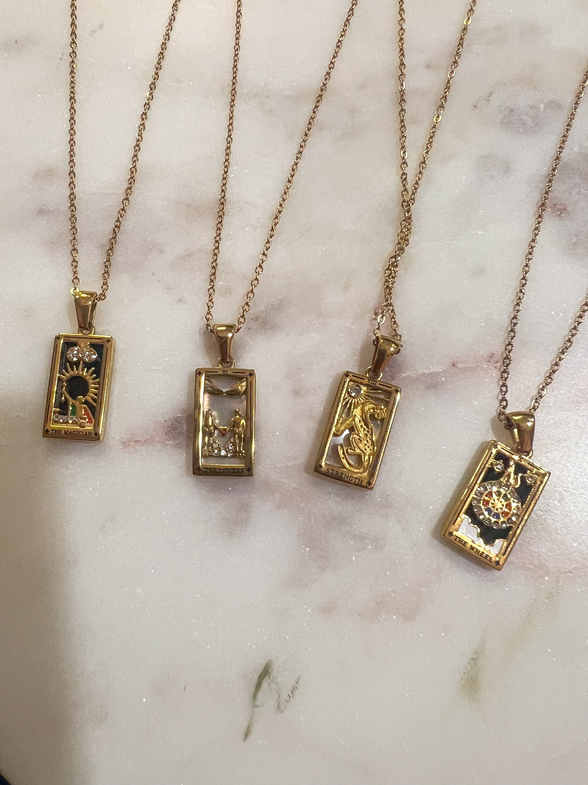 Unleash your inner mystic with our Tarot card pendant necklace. Not only is it the perfect unique gift, but it's also a stylish addition to any outfit. Embrace your quirky side and make a statement with this one-of-a-kind accessory.