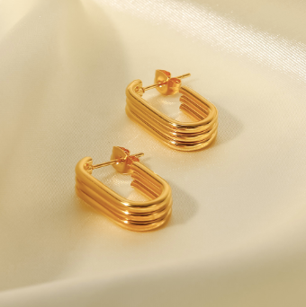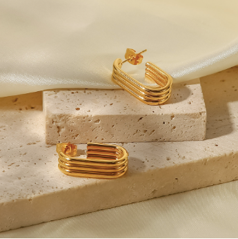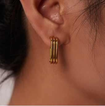 Triple Hoop U-Shaped Earrings made of 18K gold stainless steel.