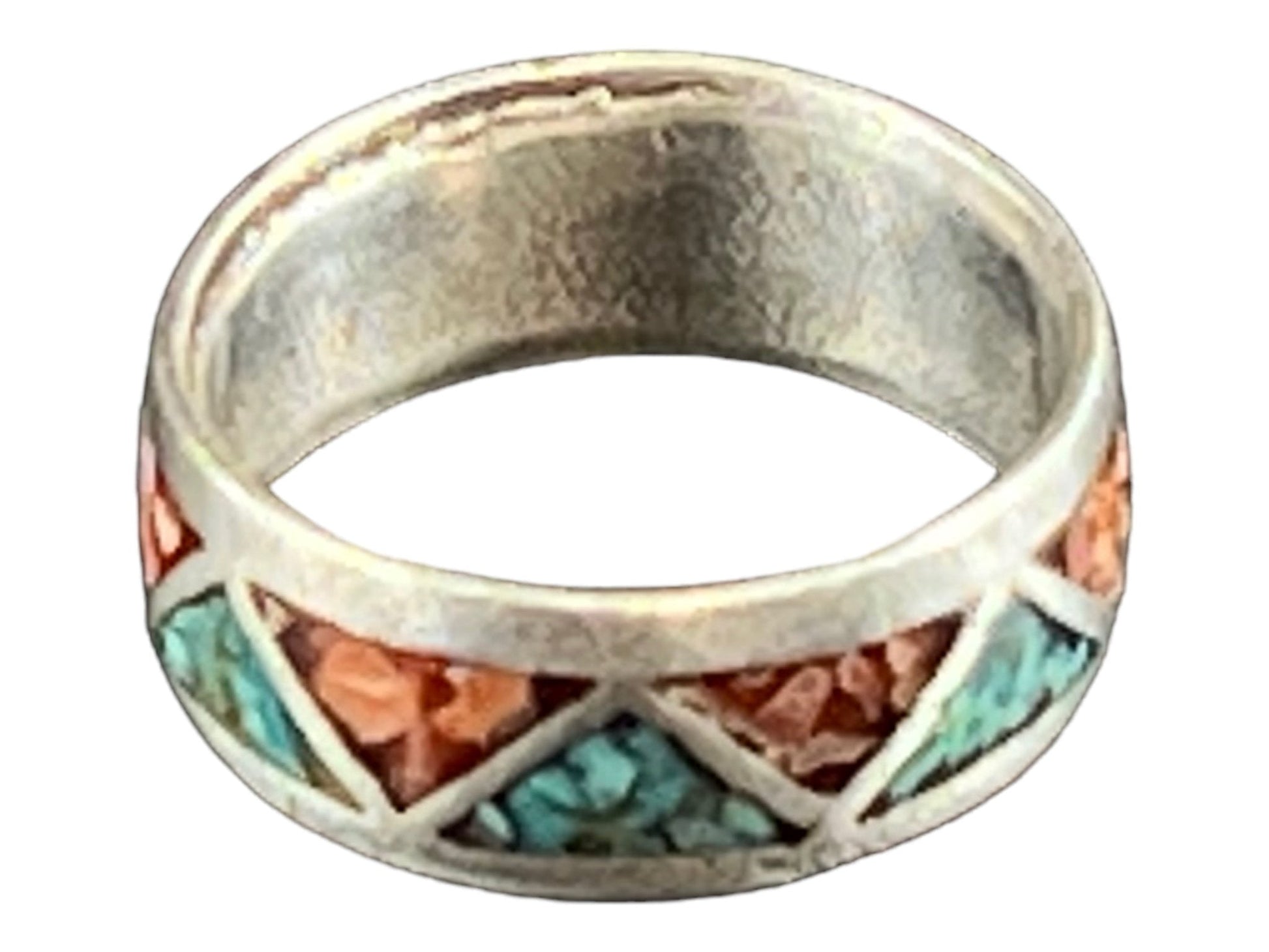 Turquoise ring - Turquoise inlay ring - size 6. Sterling silver