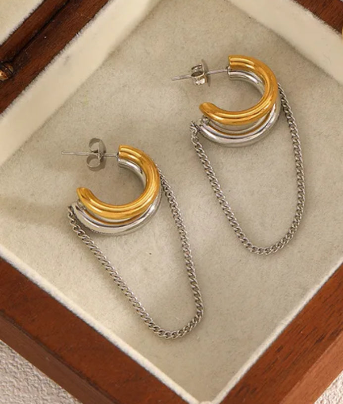 Looking for a playful addition to your jewelry collection? Check out Vera - our 2 tone block fringe hoop earrings. With a touch of humor and unique design, these earrings are sure to add a quirky twist to any outfit. Plus, the double tone block and fringe detailing make them a statement piece for any occasion.